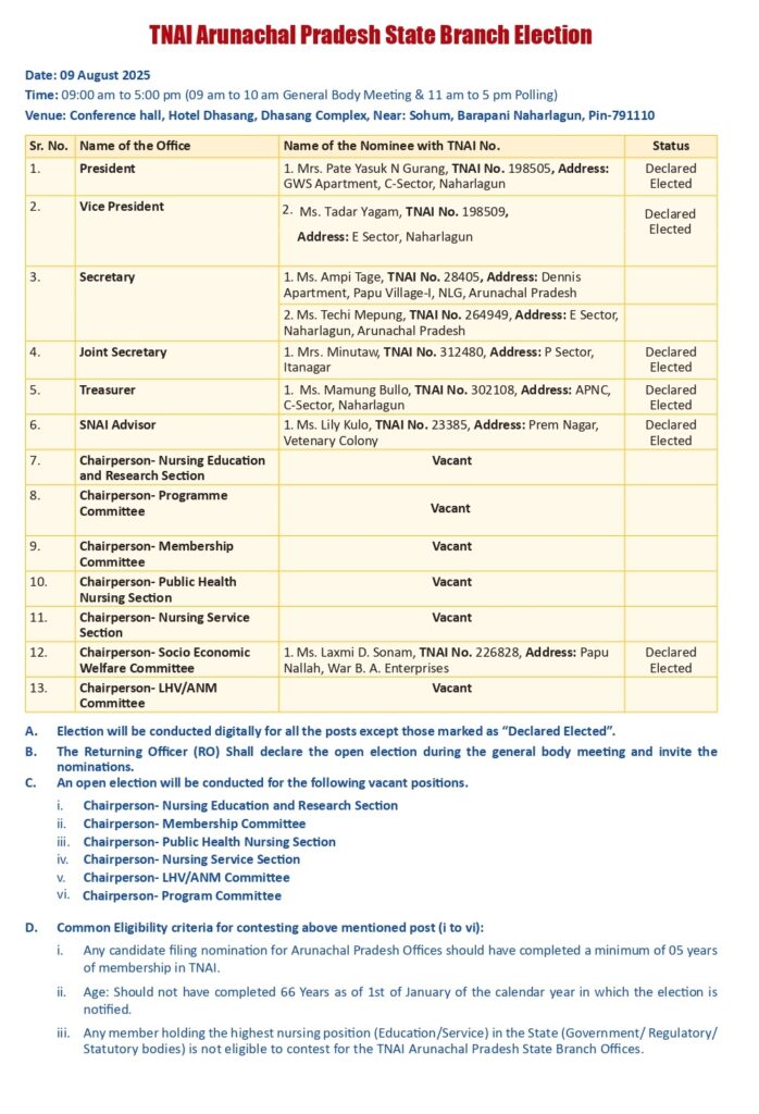 TNAI Arunachal Pradesh State Branch